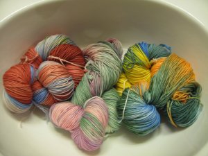 We are going to be knitting on Sunday at Papa San at 1. Hope you all can stop by for a rice bowl and some logical chat about swine flu, the economy, people who don’t knit, and the events of this past week. Here is my hand dyed yarn from Sock Camp. I am going to cast on a Taming of the Ewe scarf with the one on the right. Like I need another thing that is newly cast-on. I have 2 pair of socks in progress, a scarf, a shawl, and a baby blanket. I want to see something that works the way it is supposed to, that stacks up to be something aesthetically pleasing and more functional that it was before you started it. If you have ever knitted one of these, or if one of your friends has knitted one, you know that it doesn’t always go the way you planned, and there are small little adjustments you can make to get it to work the way you want it to. You have to constantly read your knitting, making those accomodations as needed and before you know it, you aren’t even thinking about it, you do them and things work out. And you want to do the same thing over and over and over again because each colorway has its own particular charm and is different from all the rest, because it is one of a kind.Things don’t always go the way we planned, but if we at least have directions showing us how to get there, needles, and yarn, we have a better than average chance of success. If you have everything except the yarn, can you complete this project? The answer is no. They are all dependent on each other. You can’t finish the job or even begin without one of them. How could you even consider starting? Where would you start? You can make something, but it certainly won’t come close to resembling what it is supposed to be. It may not even be able to do its job, which is to keep you warm The parts all have to work in harmony with each other.If this is the first time you have read this blog, you probably looked it up to see my rant in the last two postings. Or maybe you read them and you are tuning in to see what else I have to say. I took them down today because they have done exactly what I wanted them to do, which is to open the conversations that need to be taking place. If the dialog that was supposed to take place between district admin and the employee groups who would be affected took place as promised, we would not be in the mess we are in. In the case of the 3 LPNs, they share at least 36 years of experience and loyalty to their employer between them all. They weren’t even given options. There are positions they could fill on their own campuses. But no one even thought to ask them if they would be interested. If you had ben working there this long,, do you think that you would deserve at least an option to stay in a different position that was lower pay?We were told early this semester that there would be changes, and the big questions were: 1. do you keep everyone and lower their pay across the board, or 2. do you lay off employees so that those who remain would keep the same pay. Apparently you layoff people who have been there for 18 years and you don’t ask those affected for their input. You just erase their name from the list and give them an envelope with the contact information for the EAP in case they feel so depressed they might hurt themselves, and the number to call the people at YPIC so they can help them update their resume. And while I am at it, how about the dvd we all had to watch at the last Monday gathering? The one with the photographer showing us how if you just wait 15 minutes, the picture of the Golden Gate Bridge goes from being just a photo of the bridge to be something marvelous. The hidden message seems to be that even though you have been riffed, if you wait long enough and look hard enough, good things will come of your job being snatched out from under you by people who have no clue what it is that you do. Oh, and “Go Cardinals”. Where is my knitting? I need it now