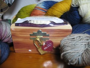 Yuuummmmmmmyyyyyyy! Maybe better than Cashmere? This is Qiviuk, also called Qiviut (pronounced Kiv-ee-uk or Kiv-ee-ut, long u) from Alaska. My brother and sister in law went on an inside passage cruise this summer. I emailed him telling him that if he ran across any yarn stores to see if they had any Qiviut. They happened across this store in Skagway, Alaska. They sell garments made of it, and this yarn. Each skein is 217 yards. Believe or not, it is softer than cashmere(oh be still my heart!) I will let you pet them for a brief moment, so as not to create a Qiviut addiction in you. Warning: it is an incurable addiction and an expensive habit, but ohhhhhhhhh soooo soffffffffttttttttt.What I have in mind for both are scarves. Pattern TBD. I don’t stray from Blue Moon Fiber Arts too often, but when I do, Omigosh do I stray. And how about this for a cool brother and sister in law? They can yarn shop for me anytime!And speaking of people who can shop for me anytime, let’s add Aimee to the list! This 1224 yards of handspun bliss is 2!0% cashmere, 30% silk, and 50% merino. It has a little heather fleck in it. I finally discovered what it wants to be and I wound it into ready to knit cakes. It will be a Shoalwater shawl. I can’t wait to get started on it! The colors are so pretty, it begs to be done for the fall.