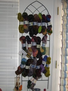 After tripping over the suitcase for a month, I was strolling through Joann’s looking for ideas about how to display and store this yarn. I found this