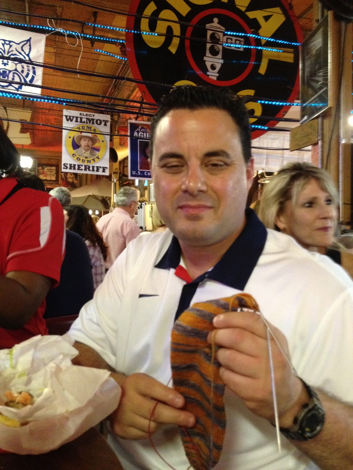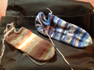 I stopped briefly at Walgreens then went home. I sat down in my chair and realized my phone wasn’t in my pocket. It wasn’t in my knitting bag or in the wheeled tote. I went back out to the car, no phone. We got rid of our land line several months ago. I was the only one who used it, and the only thing I used it for was to call my phone do find out where it was. Funny how those phones get lost under the paper, the mail, etc. When I couldn’t find it, I immediately went back to Kneader’s.