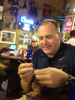 I met a Knit Sib at Kneader’s on Avenue B at about 3:45. We chatted away, ate a high calorie dessert and shared knitting projects/plans. We were seated in a booth. Another friend of ours (not a Knitter) showed up with his son. They bought some drinks and desserts. If you are familiar with Kneader’s, they sat at the long table between the booth and the soda dispensers. My Knit Sib left, I kept talking to our other friends. Sometime during this time, I pushed my knitting bag which pushed the keys to the wall end of the table and they were lodged in the space betweent the end of the table and the wall, about a 1″ space. I thought it made a surprisingly loud noise. I plucked them up and set them on the table closer to me. I think that is when my phone fell off the table.