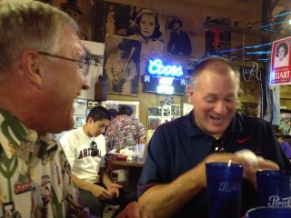 The other friend, his son and I all talked for about 15 or 20 more minutes. We got up and exited through the patio door. I was pulling my wheeled tote with one hand and had my keys in the other hand. I walked on the asphalt around to my car, they went to theirs. I loaded up my stuff and left.
